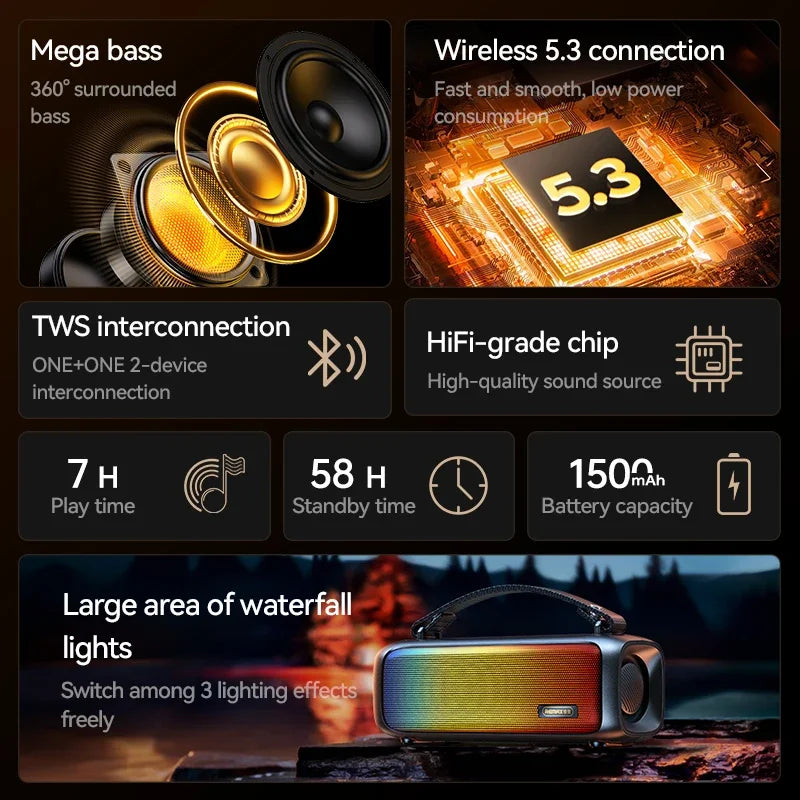 3. Waterfall lighting, three different lighting effect scenes can be switched freely.