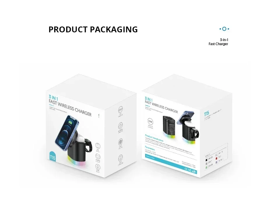 Portable 3 in 1 Magnetic Wireless Charger RGB Light Phone Stand
