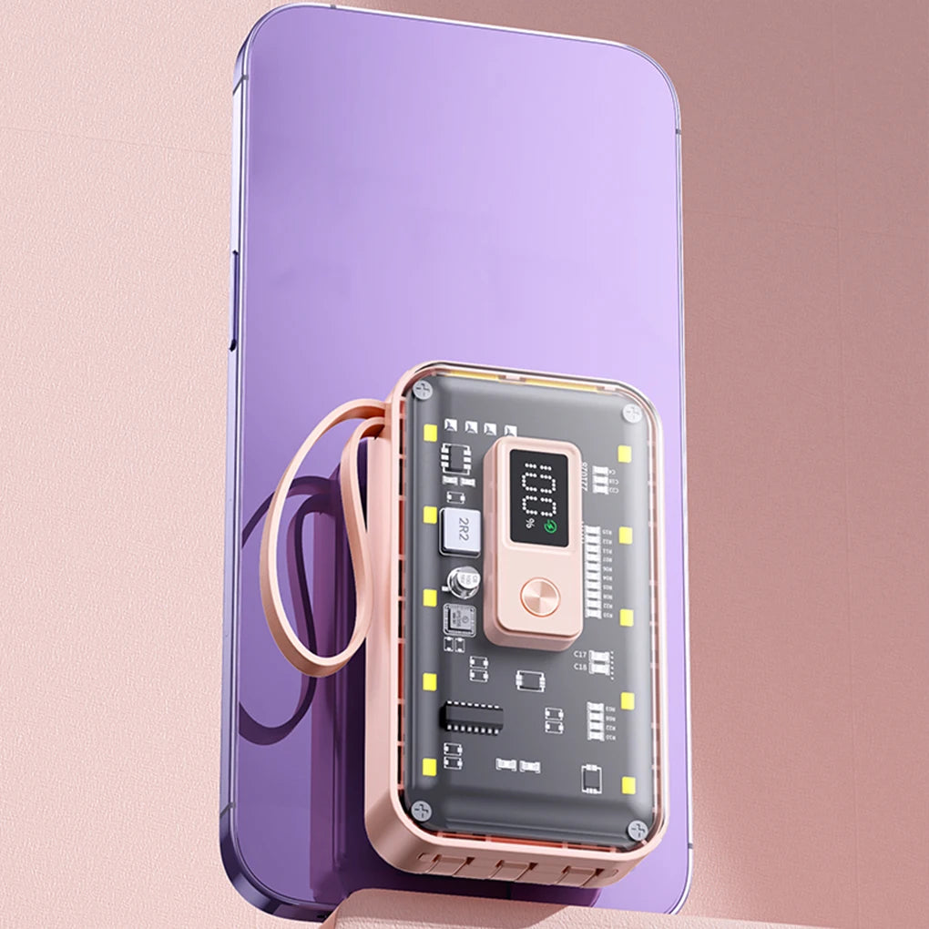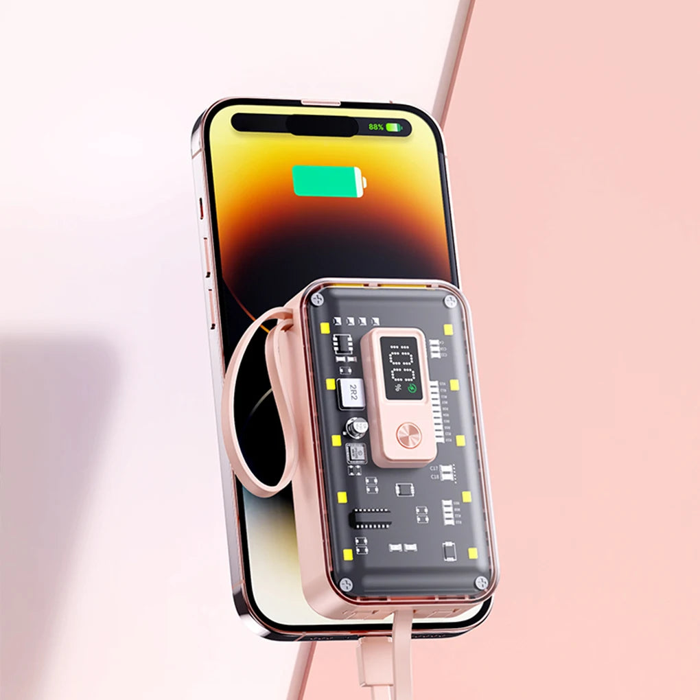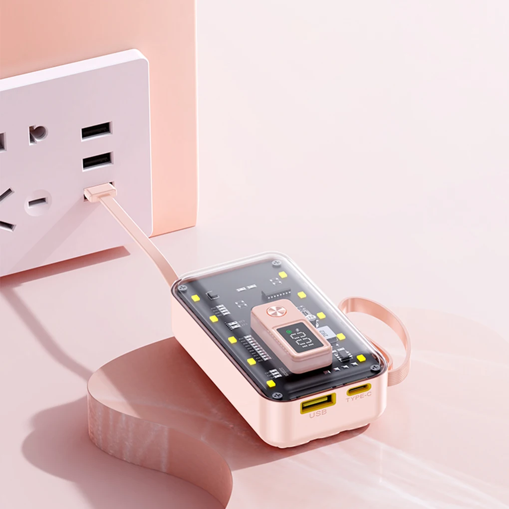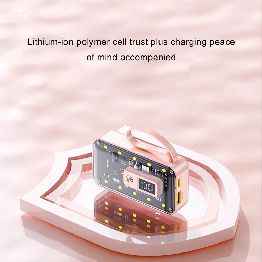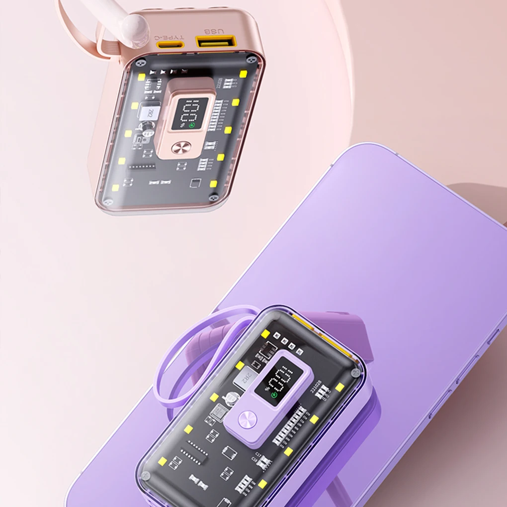 Compact and : With a hanging rope , this power bank case is not only compact and portable but also . Its future shape is compatible with various mobile phones, offering a colorful and multifunctional option for your charging needs