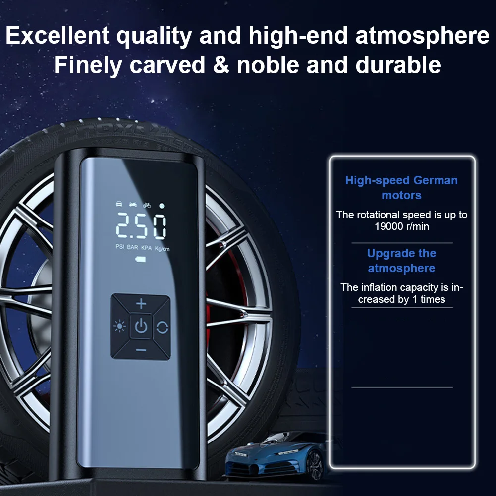 1.Versatile Use: This car air pump comes with several auxiliary nozzles, making it perfect for cars, motorcycles, bicycles, electric scooters, wheelchairs, basketballs, and footballs. Designed to be both functional and visually appealing.