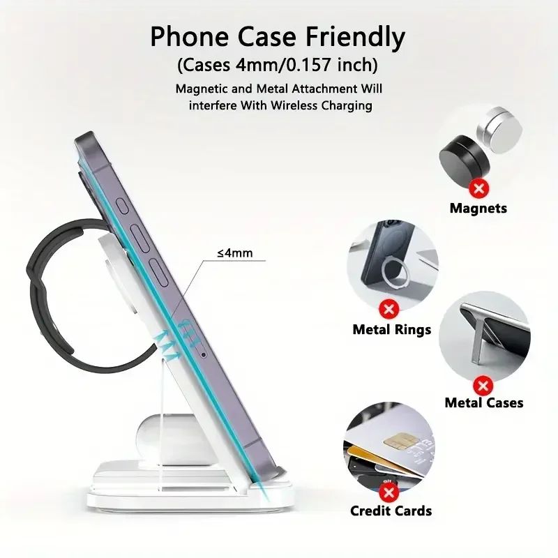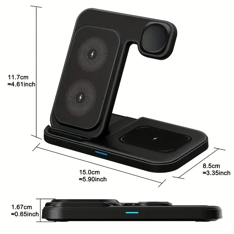 3 in 1 Wireless Charger Pad Stand Folding Fast Charging