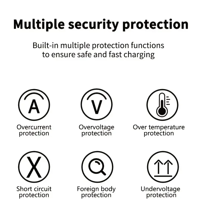 With intelligent protection technology and built-in intelligent chip, it provides over-voltage protection, over-current protection, short-circuit protection and over-heat protection to ensure absolutely safe and stable charging experience.