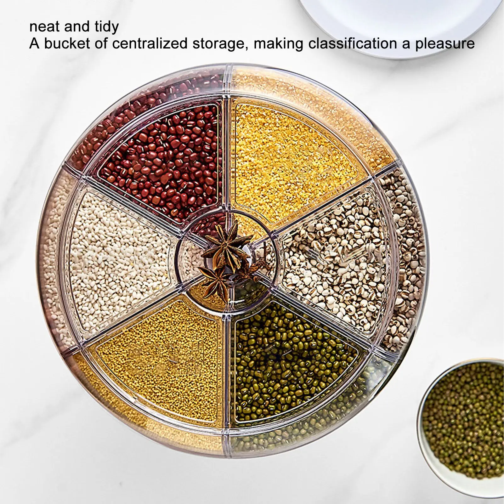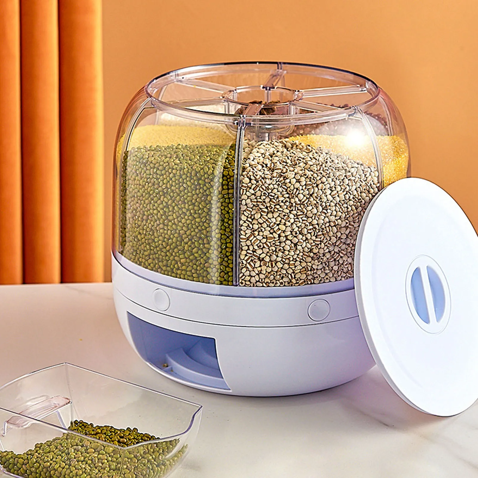 6 Grids Grain Dispenser Rotation Grain Storage Tank Insect Proof Grain Sealed Container For Home Kitchen