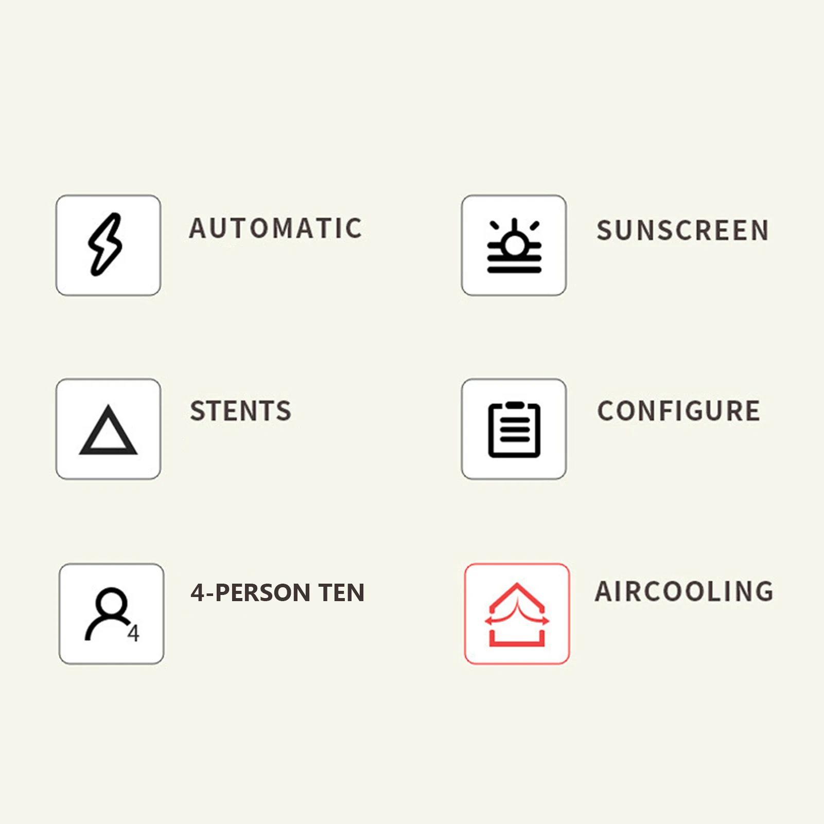 1. Full Automatic Camping Beach Tent: The automatic design allows for a easy setup, for camping and outdoor adventures.2. Ventilated Sun Shelter: With four mesh windows, this beach tent provides excellent ventilation and sun protection for a comfortable outdoor experience.