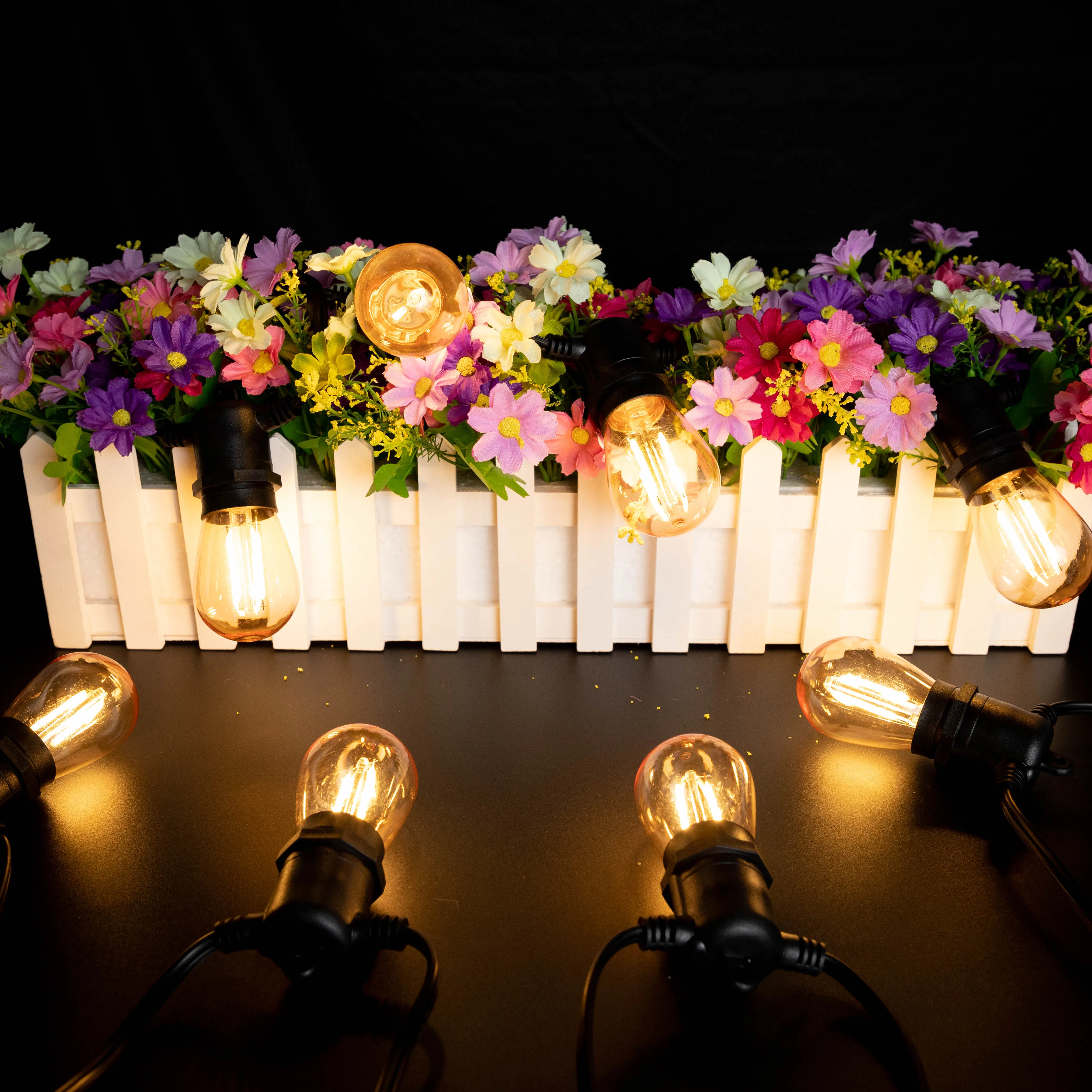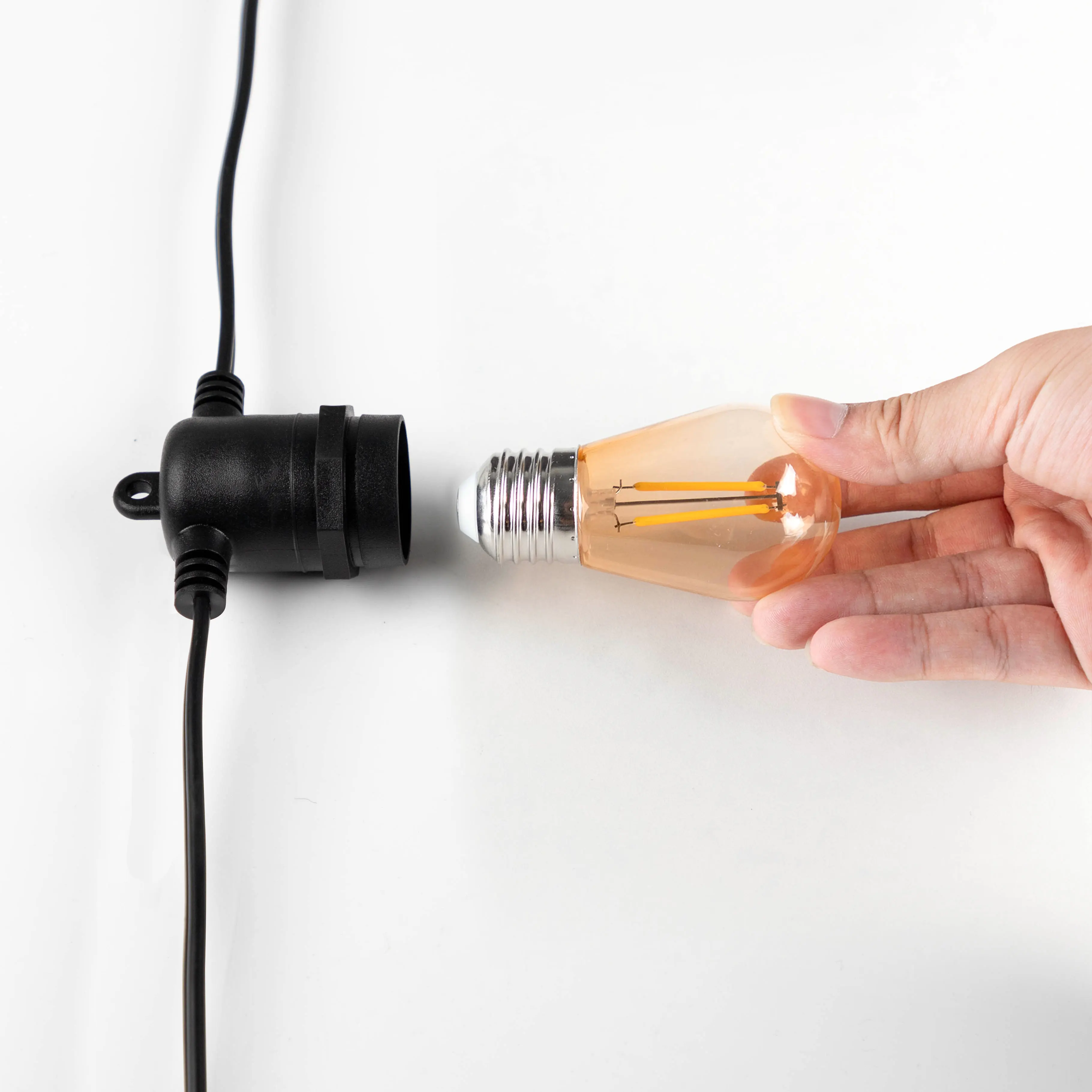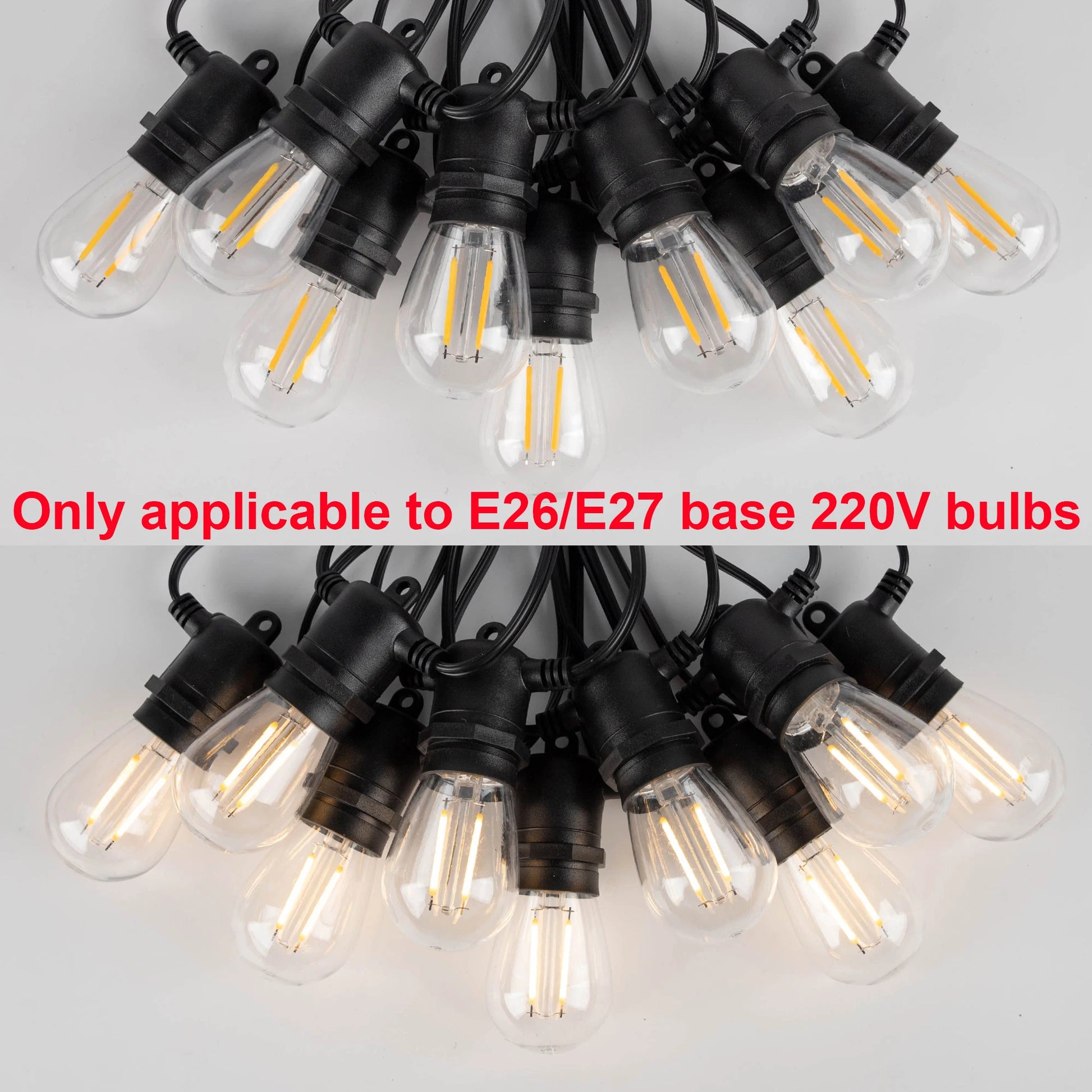 This E26、E27 base stringer uses our incandescent or LED G40, S14,ST45 or G50 E27 base globe bulbs which are sold separately.