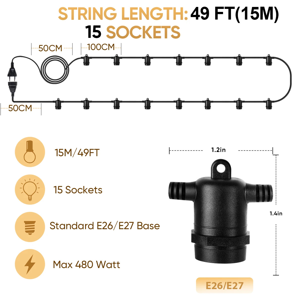 E27 Outdoor String Light Stringer E26 Light Socket Stringer