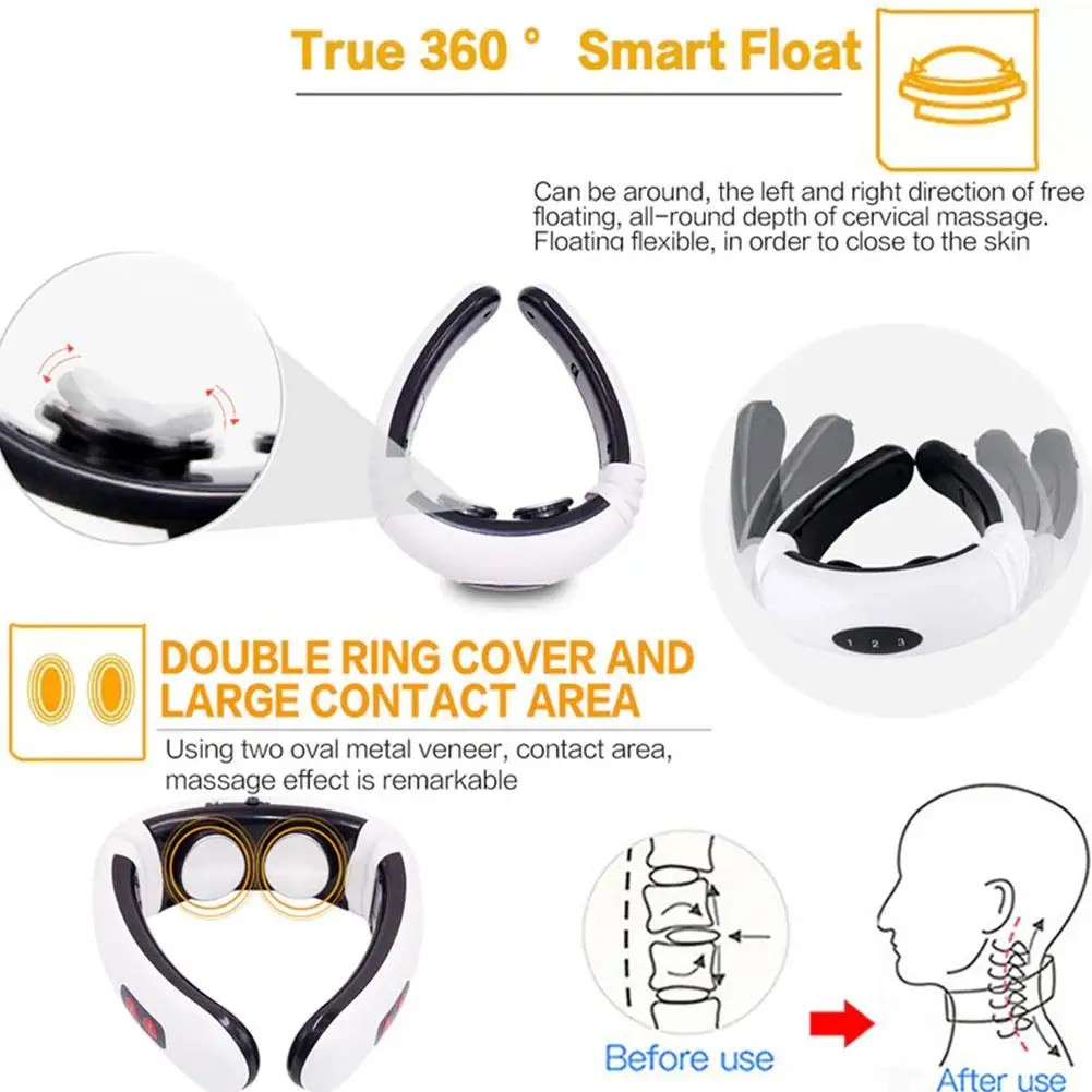 2.Ergonomic design: The wireless neck massager is made of high-quality U-shaped material, suitable for neck curves. Will not slip, shoulders are not burdened. A streamlined appearance can also be used as a clothing accessory.