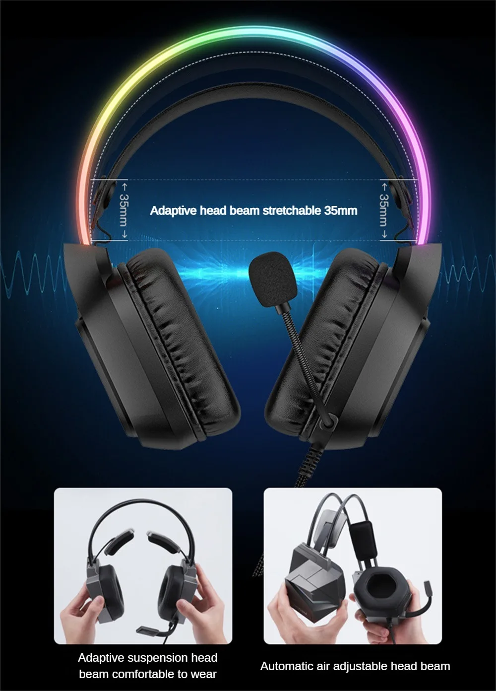 1. Adaptive Suspension Headband, Light, Soft And Comfortable To Wear, Even If You Play A Day, There Will Be No Pressure Head Or Pinching Of Ears, Especially For Glasses Wearers, The Experience Is More Outstanding.
