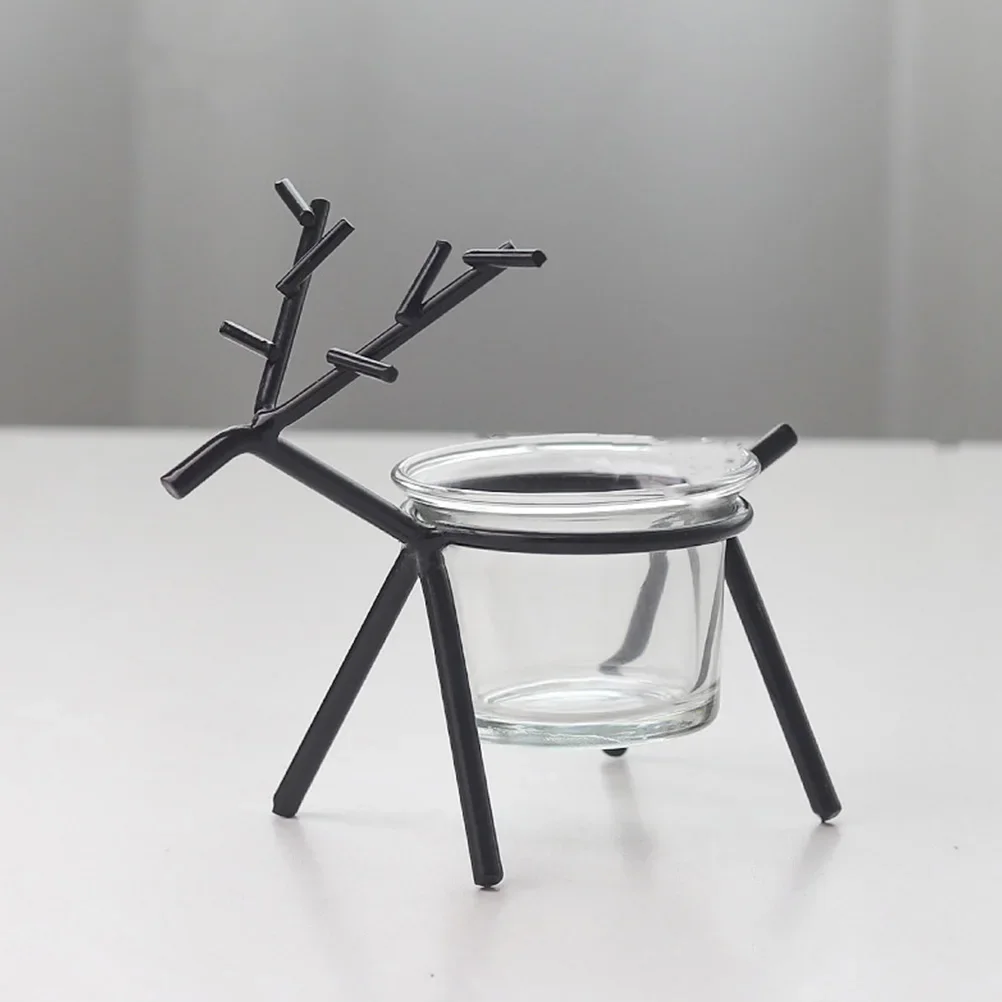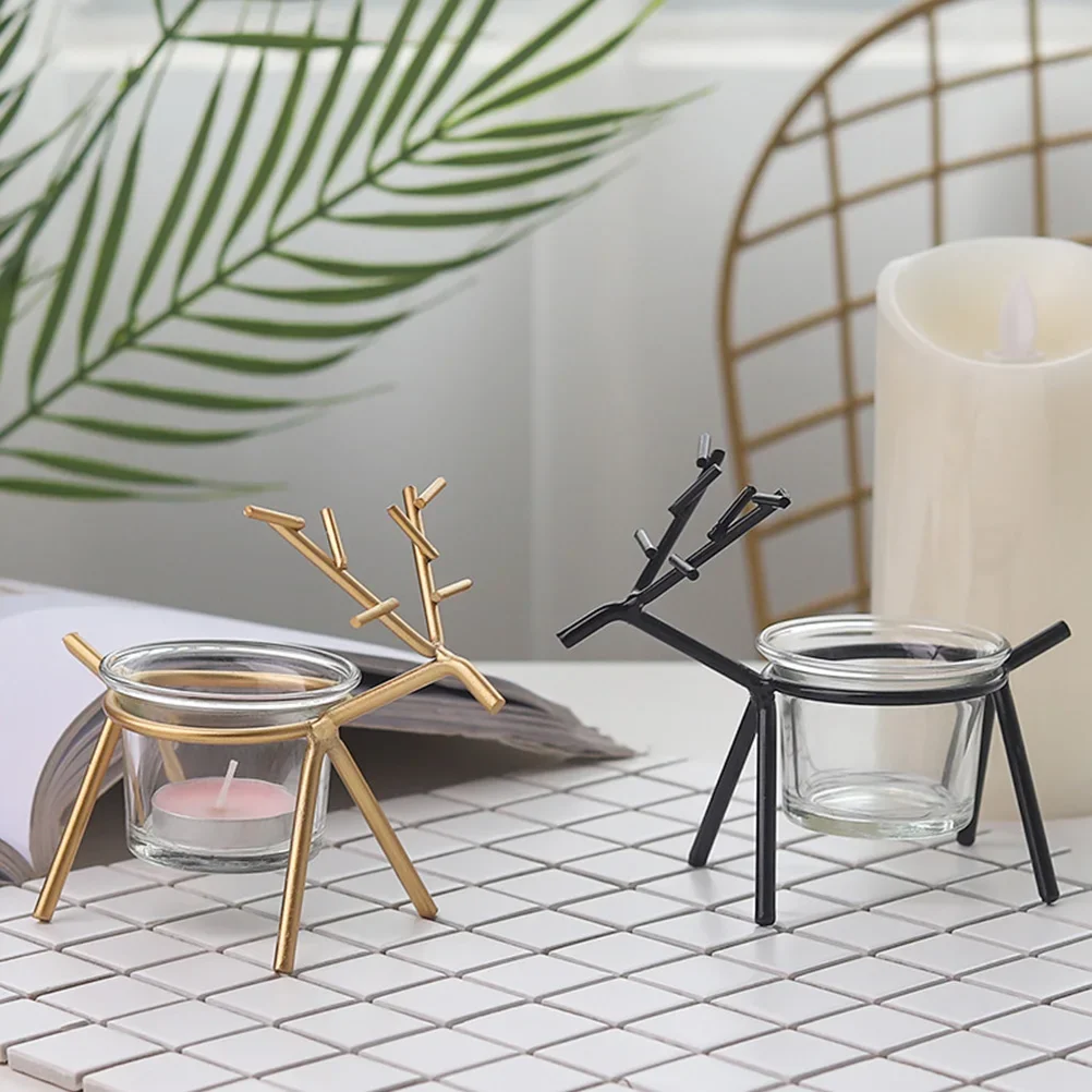 Desktop micro-landscape: Place a single reindeer candlestick on a dining table, bookshelf, or windowsill, paired with a mini Christmas tree and snowflake ornaments, instantly creating a ‘reindeer walking in the snow’ Christmas scene.
