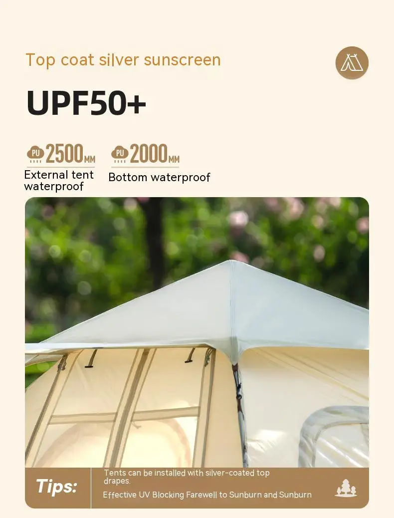 Outer Tent Material: 210T Plaid Waterproof PU2500MM Top Covered With Silver
