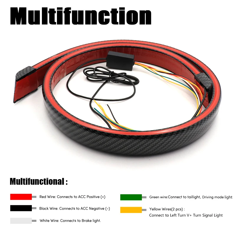Clean the surface where you plan on mounting the LED spoiler with isopropyl alchohol and a clear microfiber cloth to ensure a firm and lasting fit. (failure to do so can result in a poor attachment surface and inproper mounting).