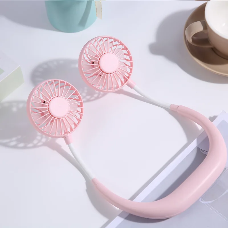 USB Mini Neck Fan Rechargeable Portable Hanging Neckband Fan Neck Sports Fan 3 Speed Adjustable Dual Electric Cooler Fan