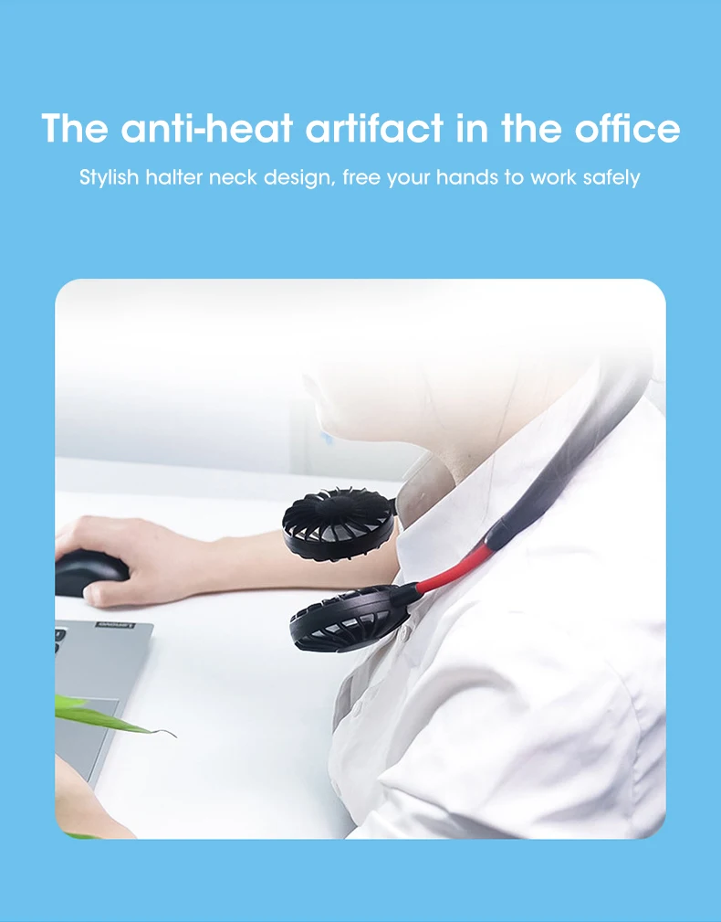 1.Hand Free Design: Neckband fan is adopted with hand free design, you can hang the fan around your neck and take it everywhere, not will feel tired or uncomfortable when you hang the fan for a long time.